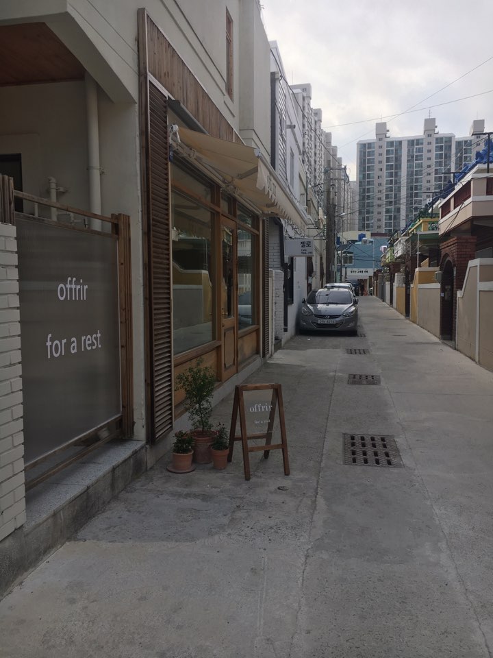 오프리르가 정말 작은골목에있어 몇번을 그냥 지나치고 돌고 하다 겨우 찾았습니다. 온천천 벚꽃길 시작지점쪽에있어서 온천천에서 벚꽃을 보고, 도로로 올라와서 카페를 갔다 집에가기 좋더라구요.