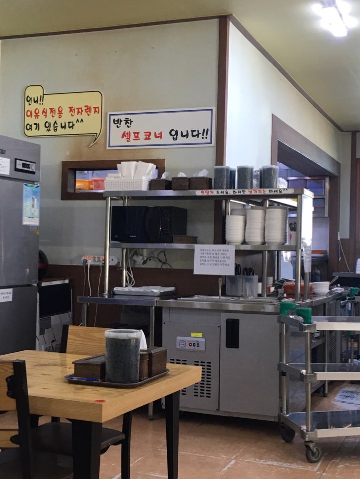 기본으로 밑반찬들이 나오지만 더 드시고싶은 분들은 셀프코너를 이용해주시면 됩니다. 평일점심쯤 방문했는데 노형점은 한가하더라고요.