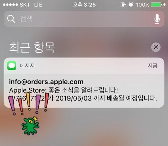 분명 다다음주나 되야 배송예정이었는데 갑자기 좋은소식을 알려드린다는 문자가와서 자세히보니 애플스토어더라고요! 배송이 약 2주정도 당겨져 몇일까지 배송예정이라는것까지 알려주었습니다.
