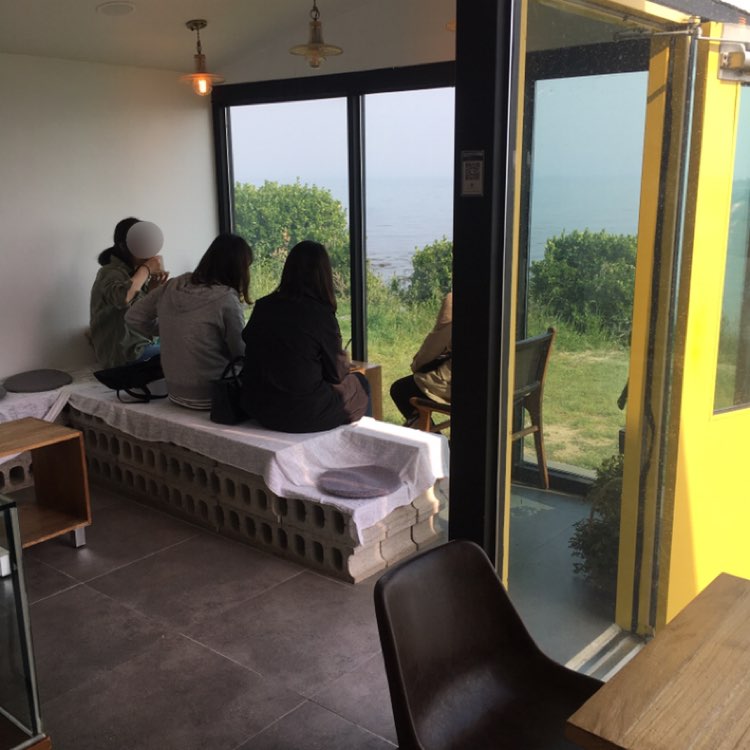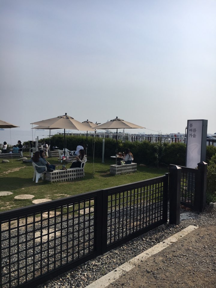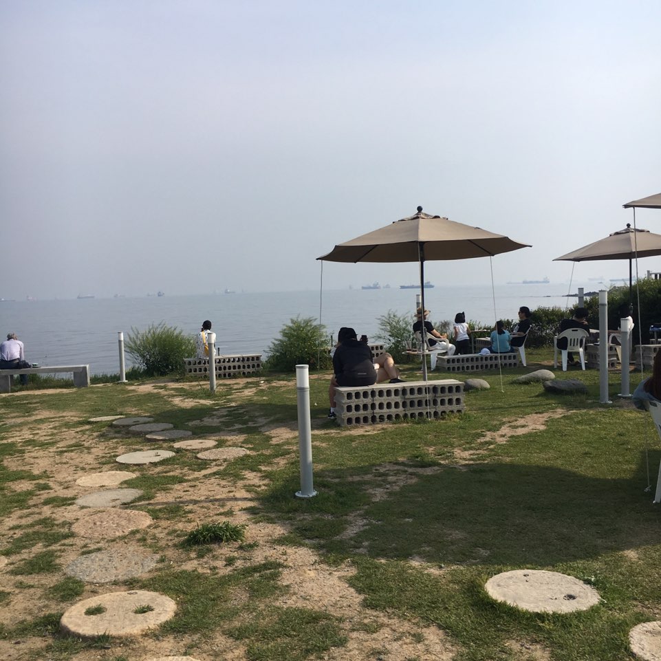 카페 내부에서 바라보는 밖의 풍경은 정말 아름다웠지만.. 막상 야외석에 앉게 되면 미세먼지 때문에 푸른 바다와 맑은 하늘을 볼 수가 없어 답답하기만 합니다. 날씨가 맑고 미세먼지가 덜한 날 방문하면 정말 예쁠 것 같더라고요.