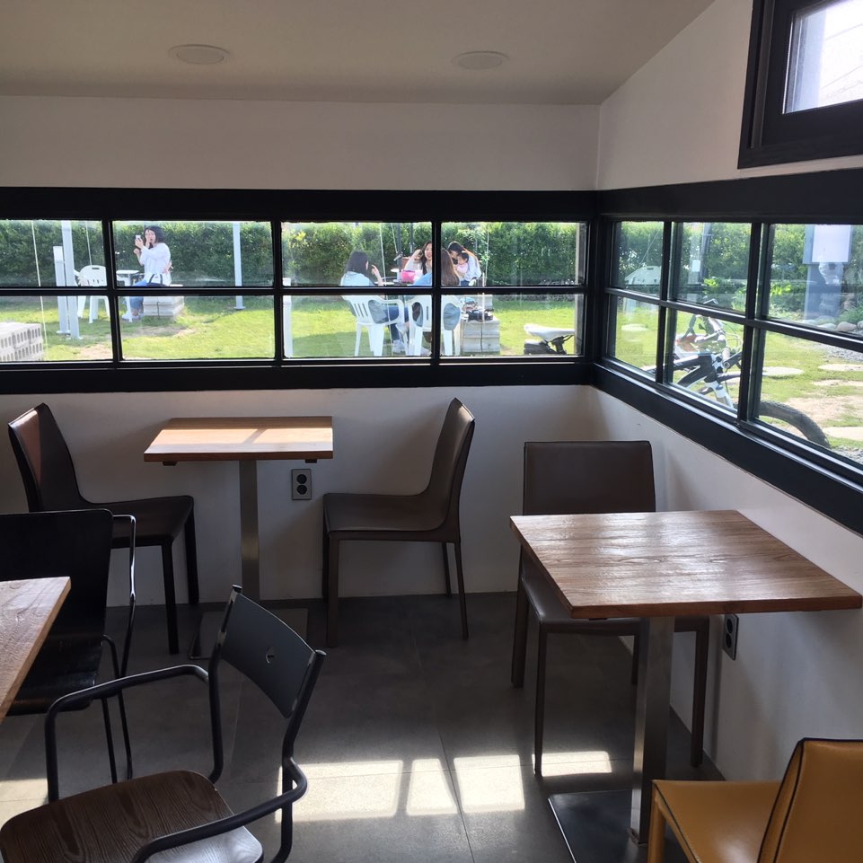 창문 너머로 보이는 푸른 잔디밭이 정말 예뻤던 카페였습니다. 다들 마당에 야외에 자리를 잡고 앉으시는 줄 알았는데 카페 내부에도 은근 사람들이 많이 있더라고요.