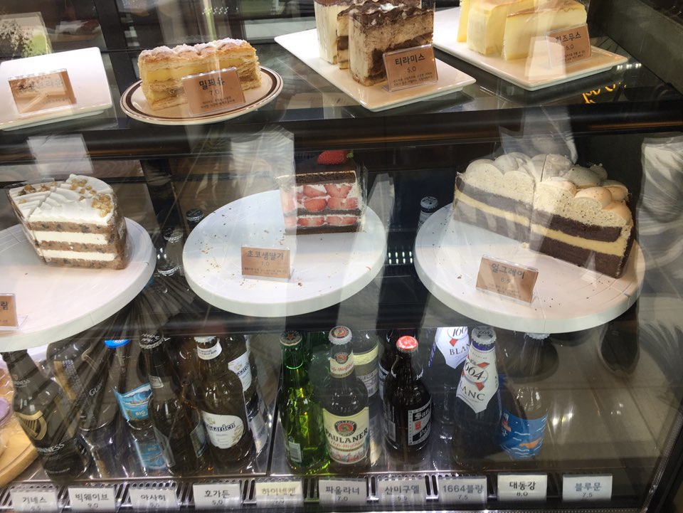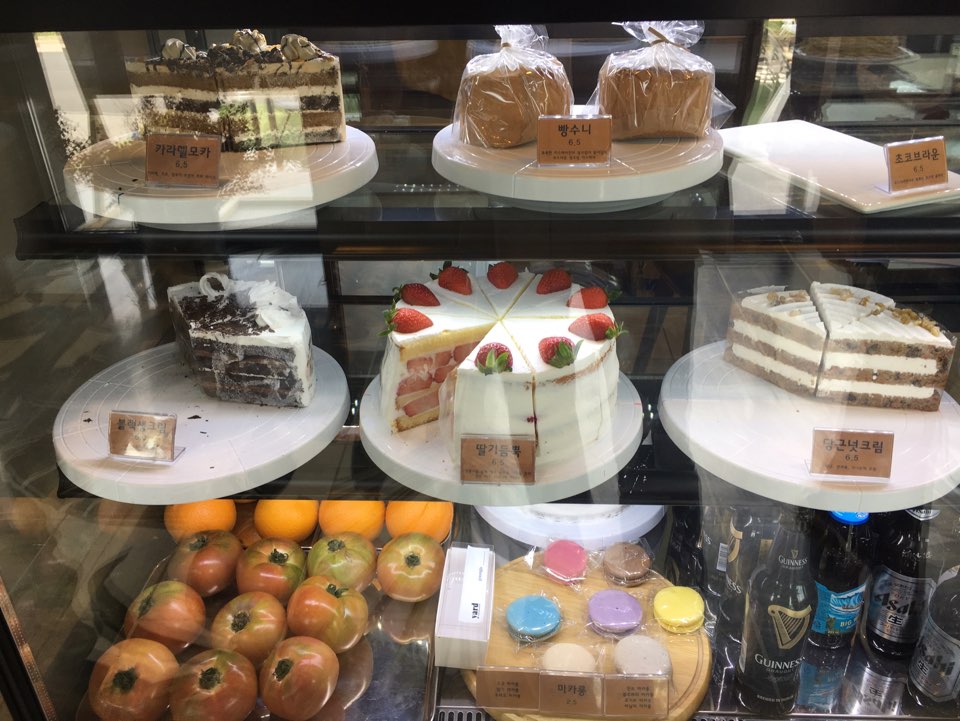 음료와 브런치 외에도 베이커리류들도 판매 중이었습니다. 케이크와 마카롱도 판매 중이더라고요. 우선 딸기 듬뿍 생크림 조각 케이크 하나와 음료를 한참 고민했던 것 같습니다..ㅋㅋㅋㅋ