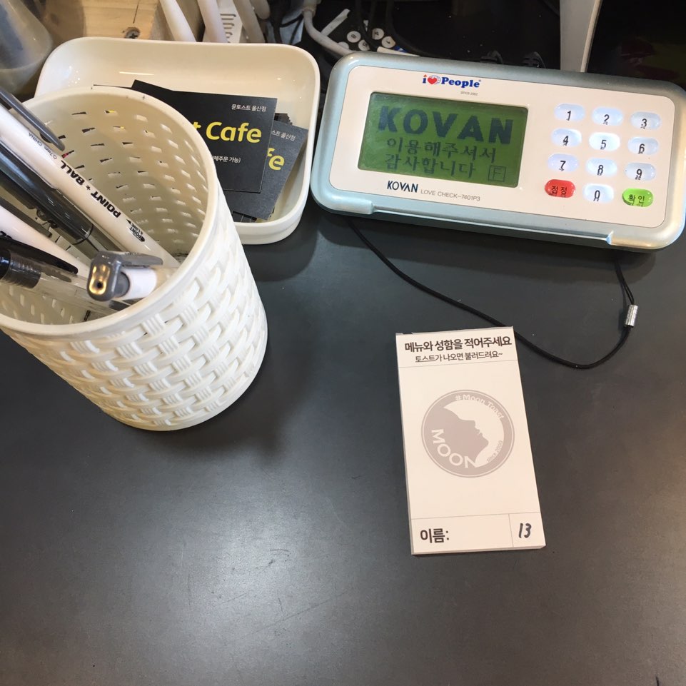 문 토스트 주문방법은 메뉴판앞에 준비되어있는 포스트잇에 메뉴와 이름또는 별명을 적어주시면 된다고 해요. 사람이 없을때는 메뉴이름을 불러주시지만 사람이 많을땐 이름으로 불러주신다고해요.