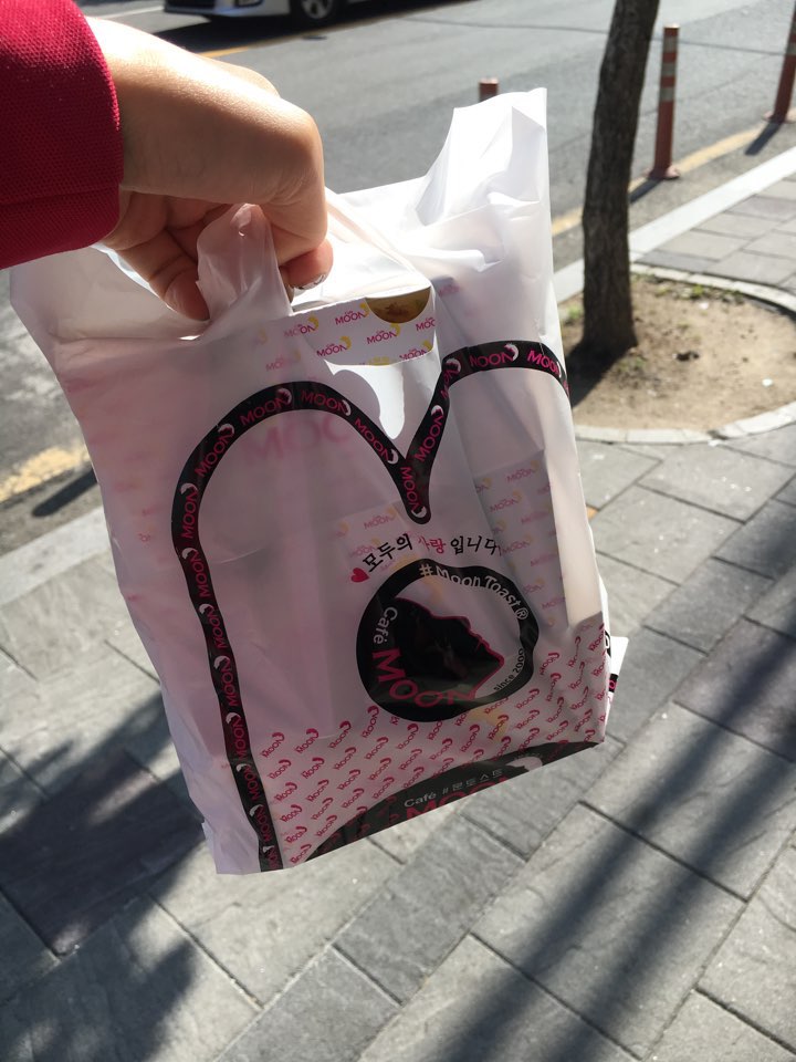 약 5분 정도 기다리니 바로 나왔습니다. 토스트 하나당 상자 안에 넣어서 포장이 되더라고요. 들고 가기 번거롭지 않게 봉지에 한번 더 담아서 건네주십니다.