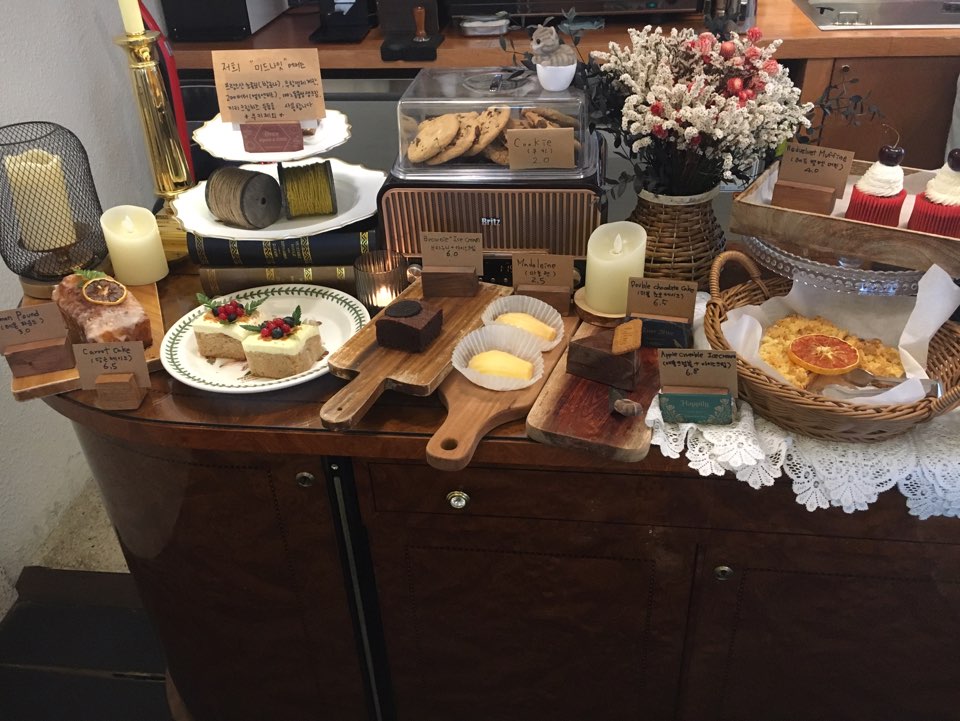 카운터 왼쪽편에보면 디저트들도 준비되어있습니다. 디저트도 케이크, 쿠키, 머핀 등등이 준비되어있는데 그냥 지나칠수가 없어 레몬파운드도 함께 주문하였습니다.