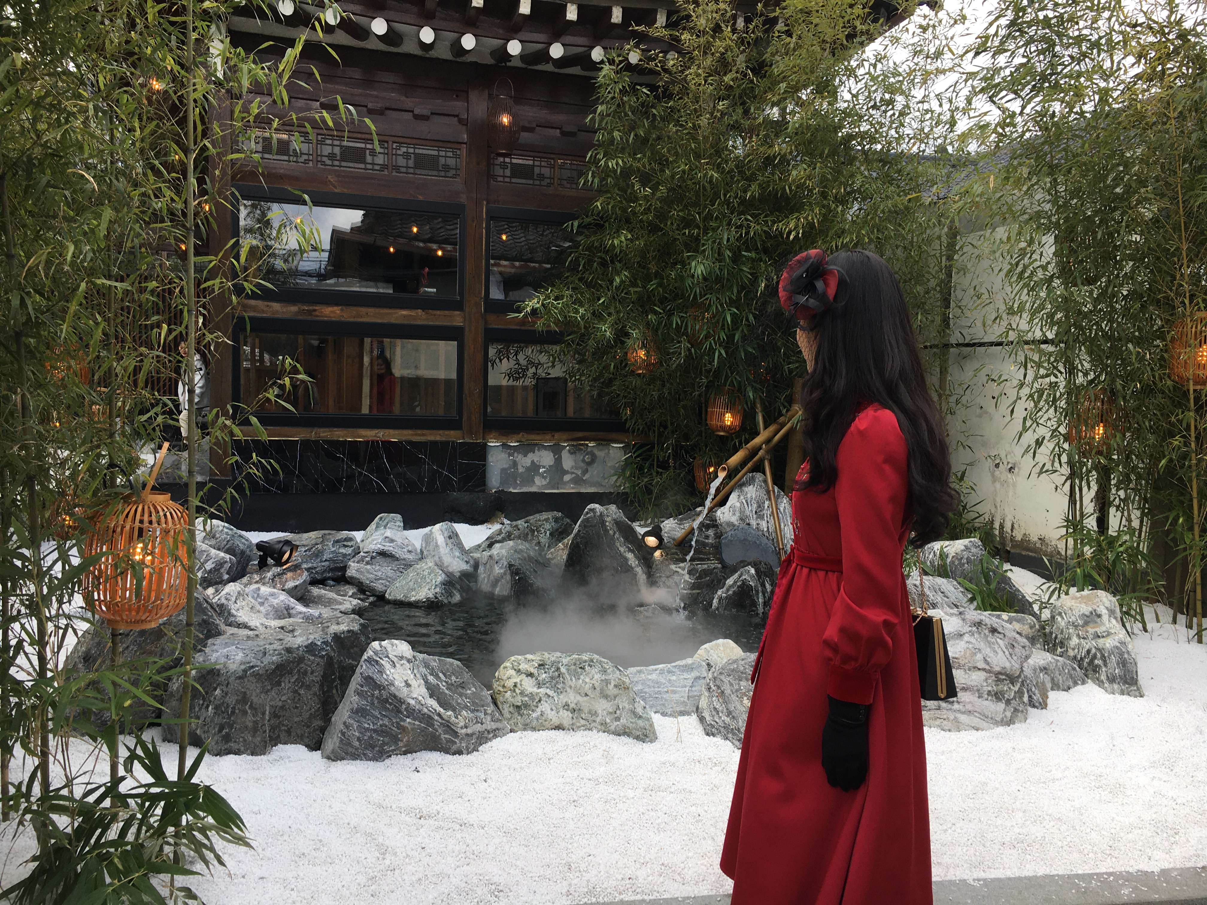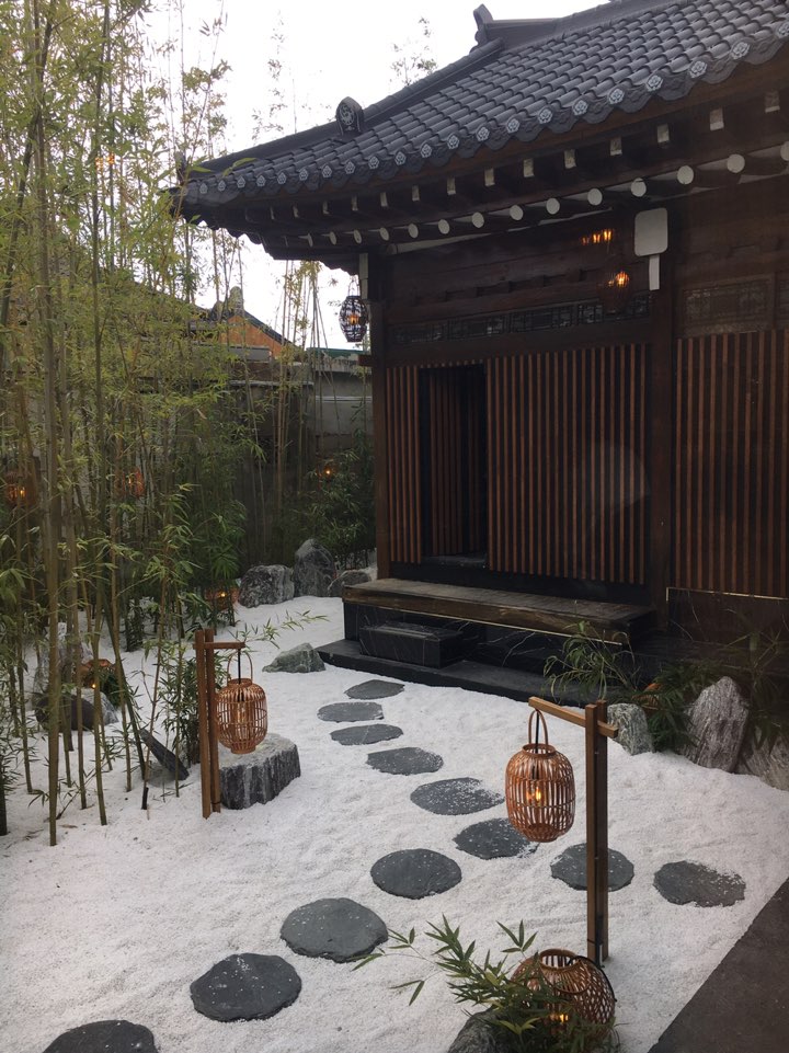 전체적으로 일본에 온듯한 느낌이 나는 풍경입니다. 저는 바닥에 이 자갈(?)이 정말 독특해서 마음에 들었는데 다른 분들은 가게 앞의 온천을 더 마음에 들어하시더라고요.