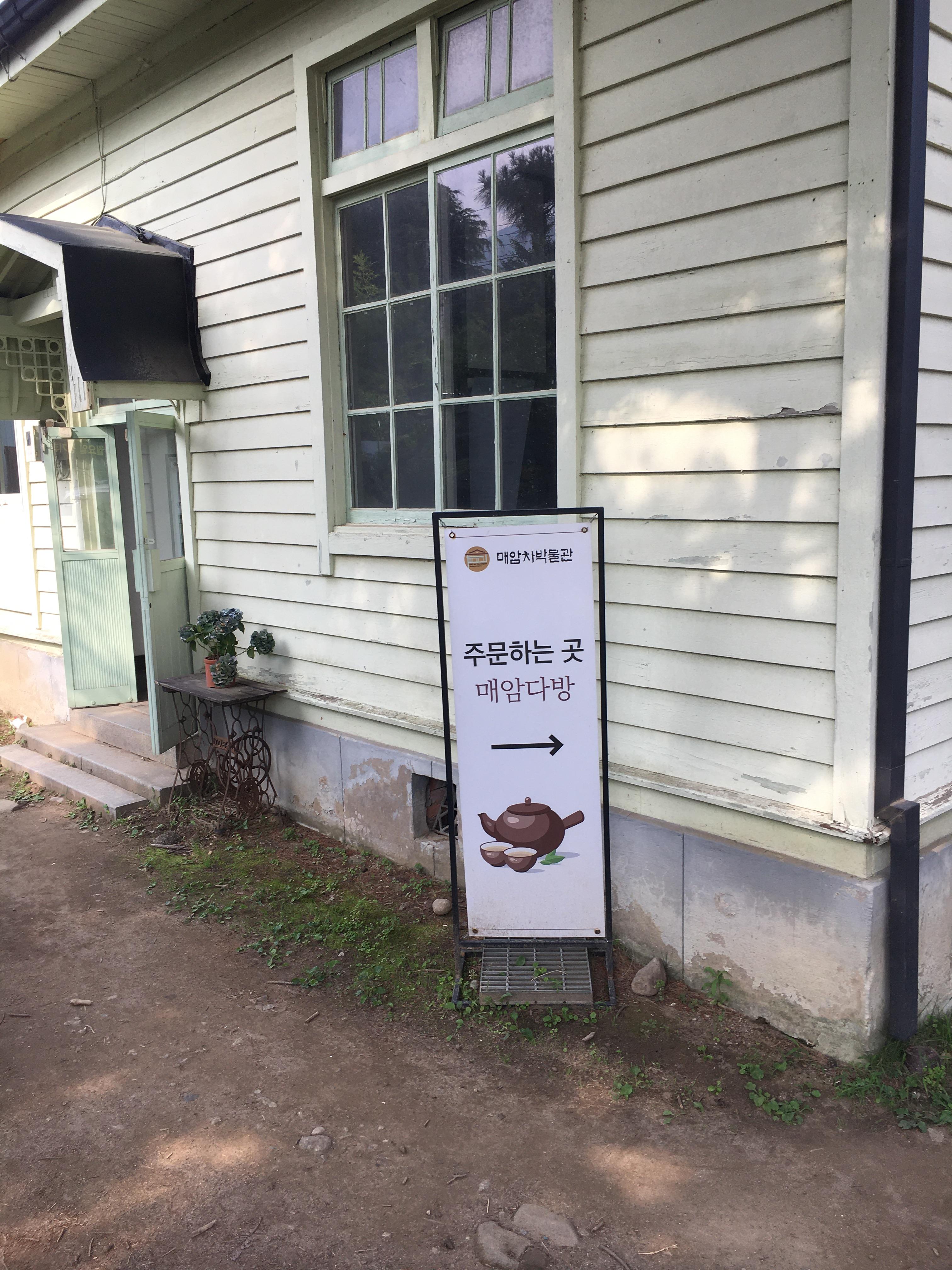 주차 후 가게 안으로 들어가시면 주문하는 곳 표지판이 보입니다. 표지판 뒤에 보이는 건물은 매암 차문화 박물관으로 인별에서 많이 보이는 뒷모습 인생 샷 건지기 좋은 포토스폿이 있는 곳이에요.
