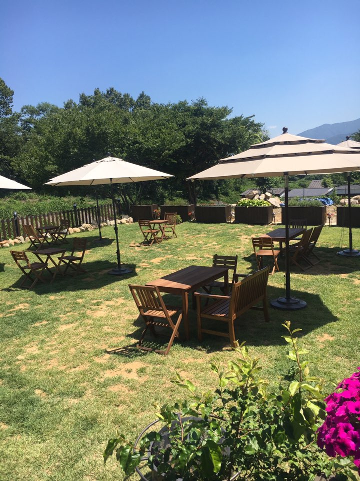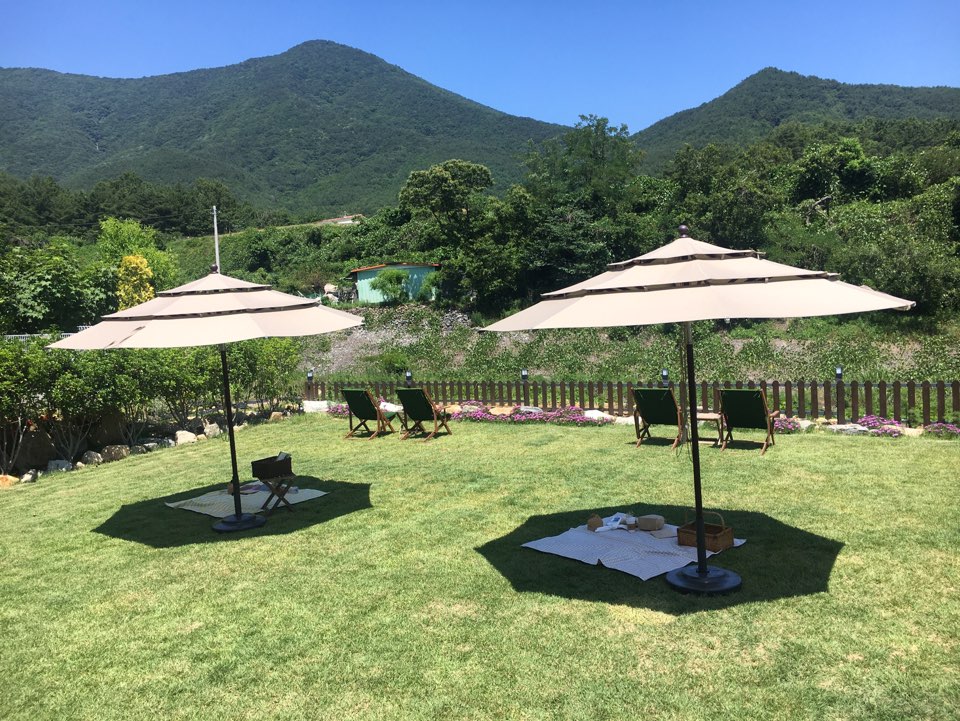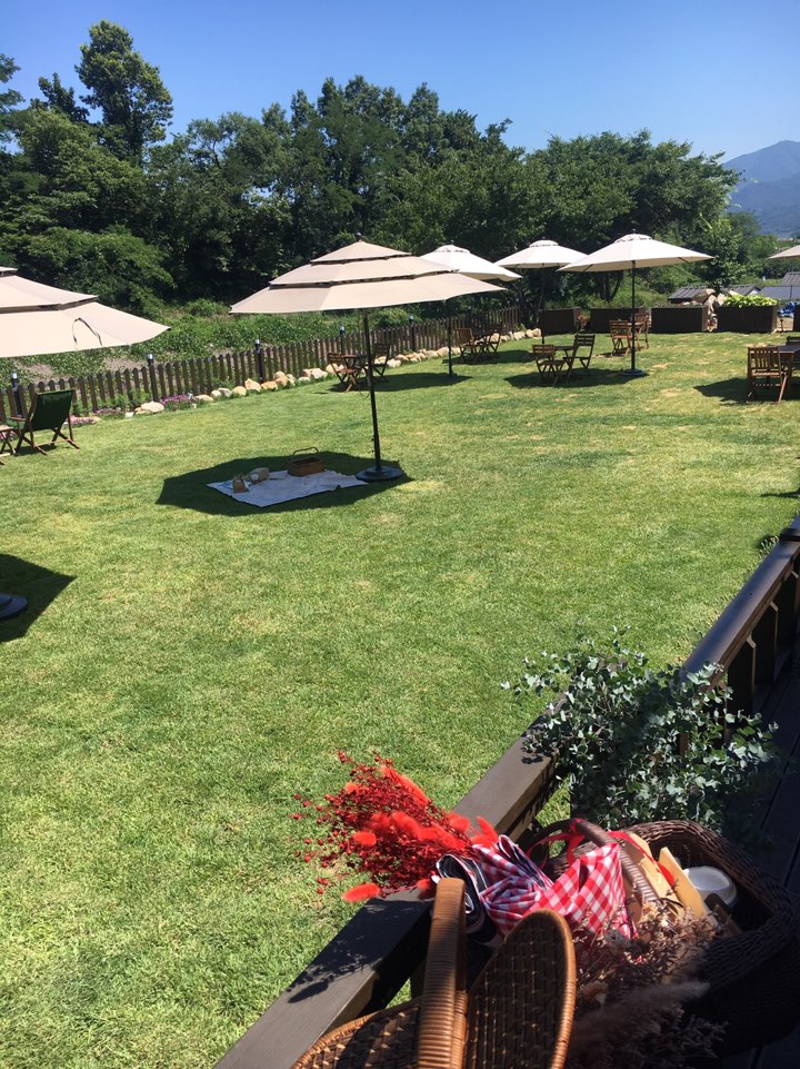 피크닉 온 것같이 피크닉 매트와 바구니, 소품들이 마당에 준비되어있기 때문에 몸만 가셔도 피크닉을 즐기는 것 같은(?) 사진을 건지 실수 있습니다. 마당은 역시 해가 나있을 때가 가장 예쁜 것 같아요.