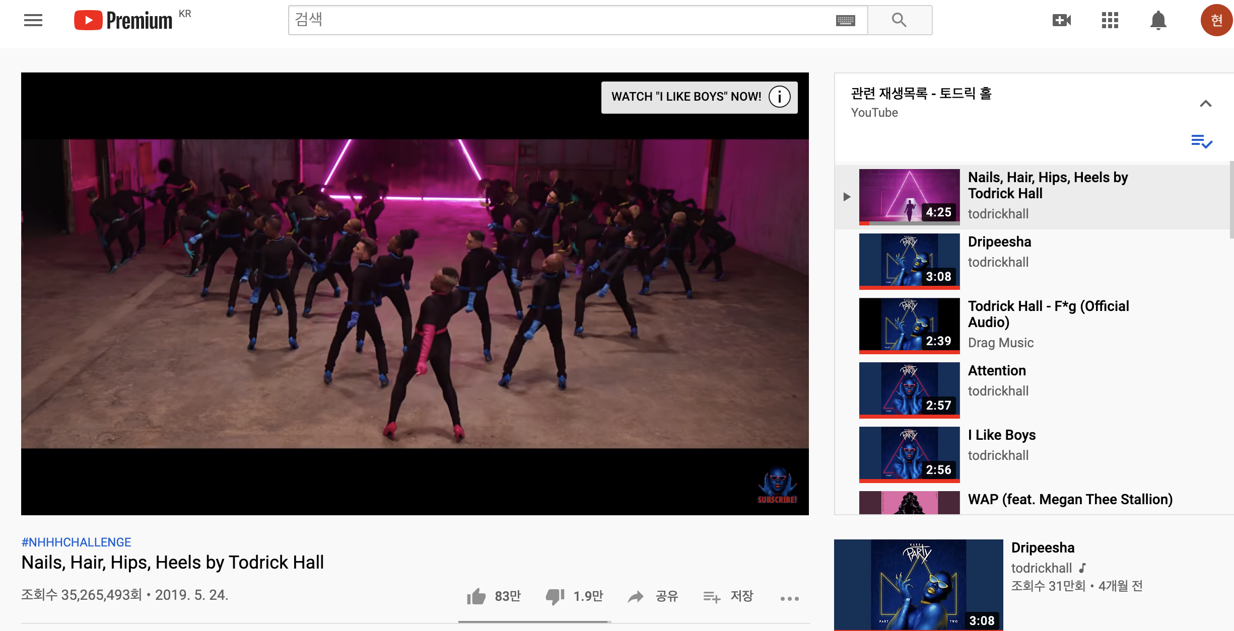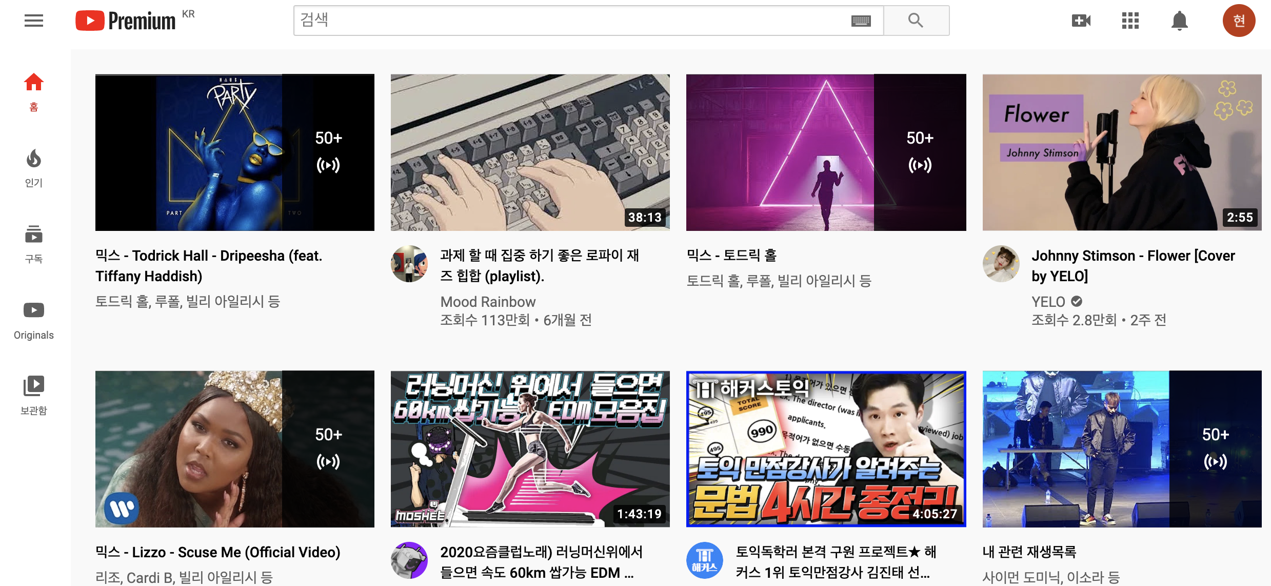 제가 좋아하는 토드릭 홀 가수와 카디비, 리조까지 최근 자주듣는 노래 모음집이 딱 유튜브 첫화면에 뜨더라구요. 맞춤동영상이 좋을때도 있지만 한편으로는 유튜브의 늪에서 빠져나가지 못하게합니다.