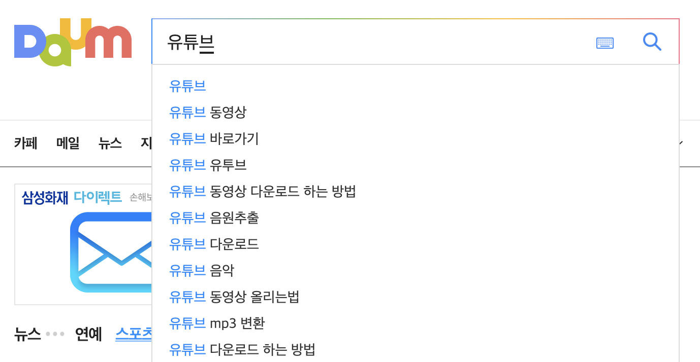 웹에서 '유튜브'를 검색하여 클릭하시고, 유튜브 홈페이지로 이동해주세요.